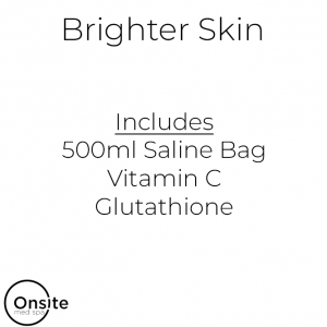 The brighter skin drip includes Vitamin C & Glutathione in a 500ml saline bag.